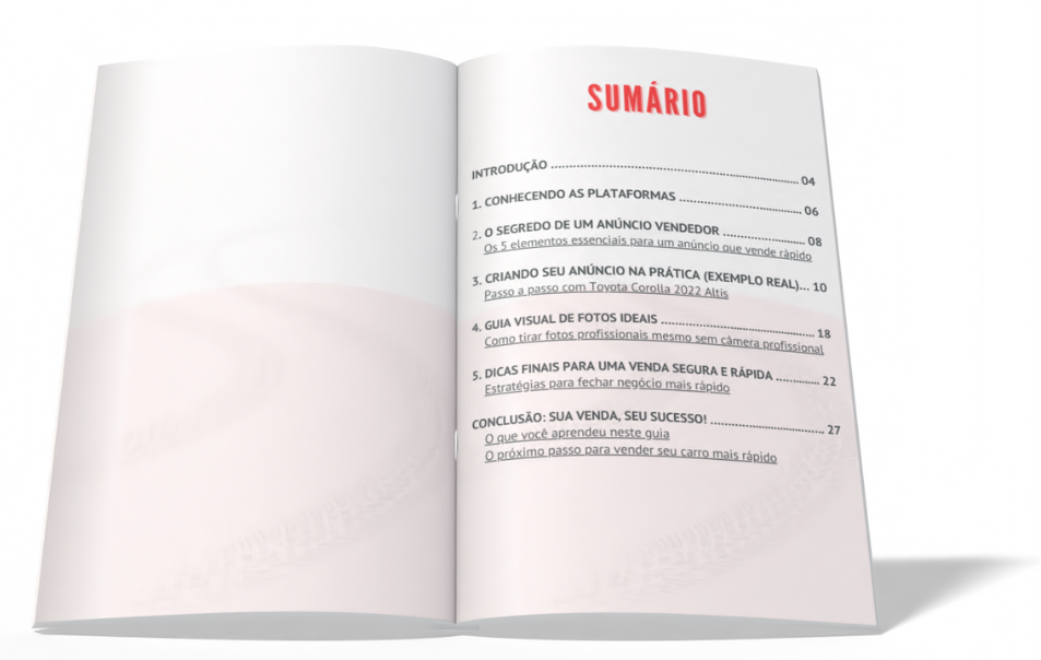 Garanta agora o seu eBook e descubra o método que realmente funciona para vender seu carro rápido e pelo melhor preço.